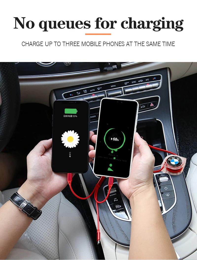 3 In 1 Micro USB Type C Charging Cable Multi Charger For BMW X1 X2 X3 X5 X4 X6 X7 G30 G20 G32 G11 G12 F40 F30 F20 F10 F34 F07