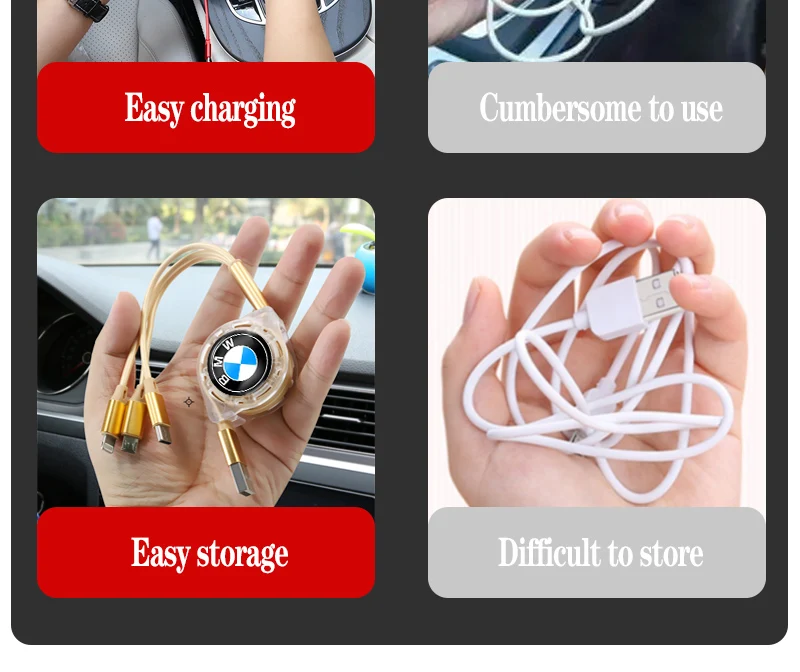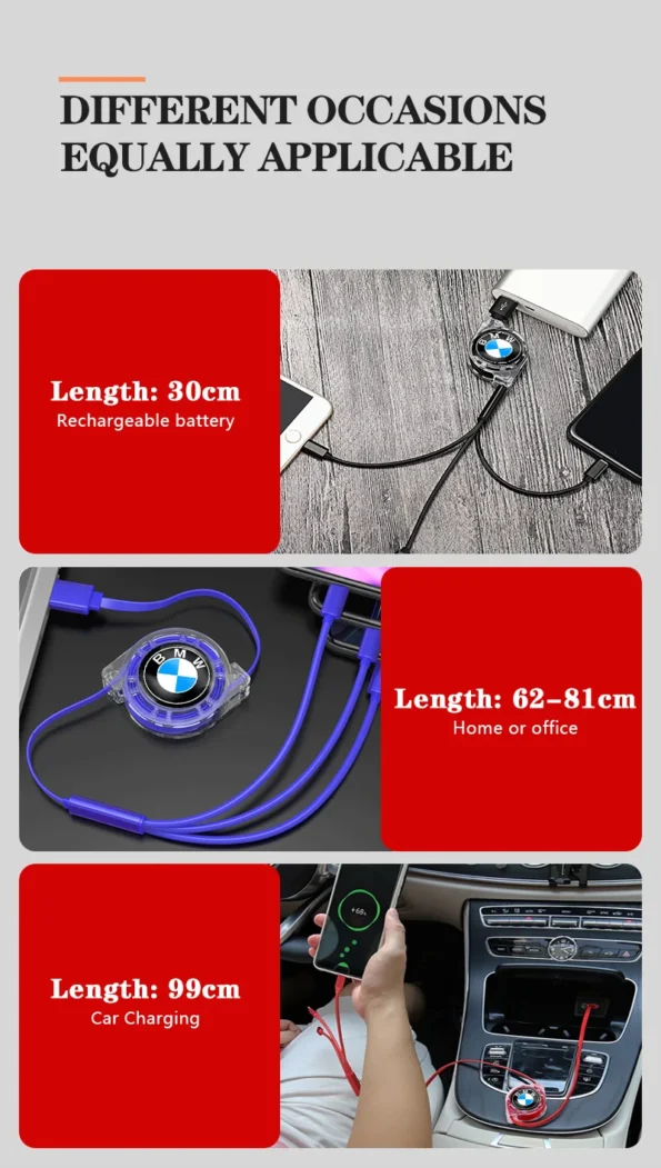 3 In 1 Micro USB Type C Charging Cable Multi Charger For BMW X1 X2 X3 X5 X4 X6 X7 G30 G20 G32 G11 G12 F40 F30 F20 F10 F34 F07 F44 F45 G15 G16 E70 E46 E90 E91 E60 E39 E36 E87 E53