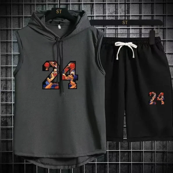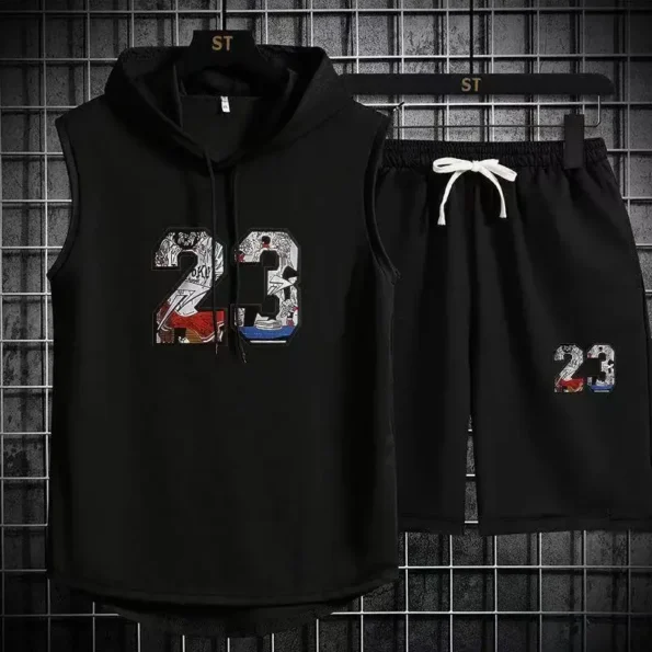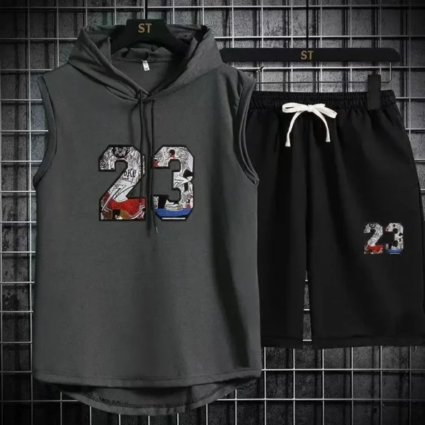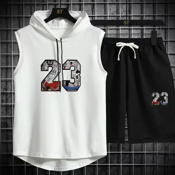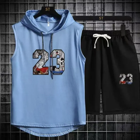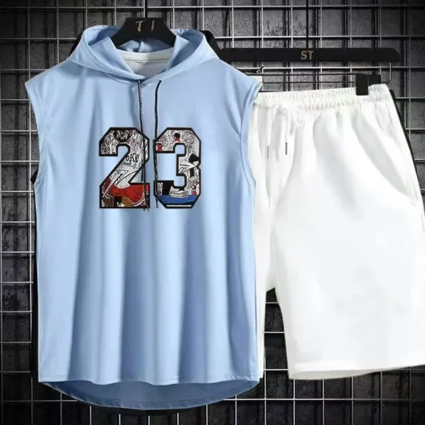 Brand Summer Men’s Two Piece Set CasualT-Shirt and Shorts Set Mens Sports Suit Fashion Short Sleeve Tracksuit Hooded T-shirt