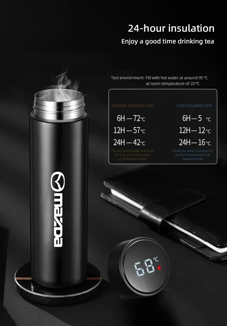 Car Smart Thermos Bottle With Temperature Display Coffee Cup For Mazda 3 6 Atenza Axela Demio CX3 CX5 MP MS RX8 Car Accessories