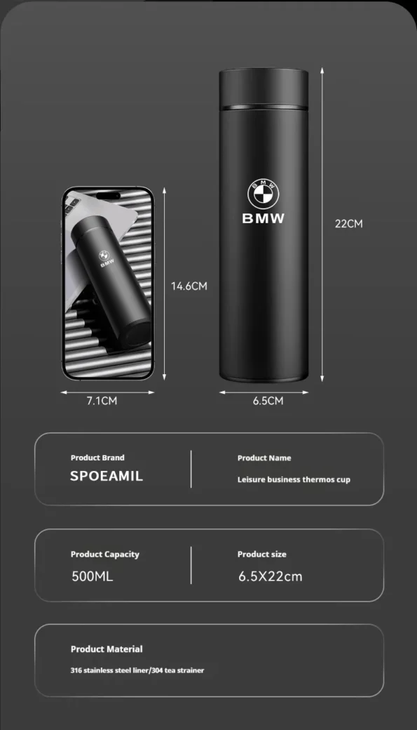 Car Vacuum Cup Temperature Display Coffee Cup BMW M M2 M3 X1 X2 X3 X4 X5 X7 E36 E39 E46 E70 E60 E90 E91 F10 F15 F20 F30 G20 G30