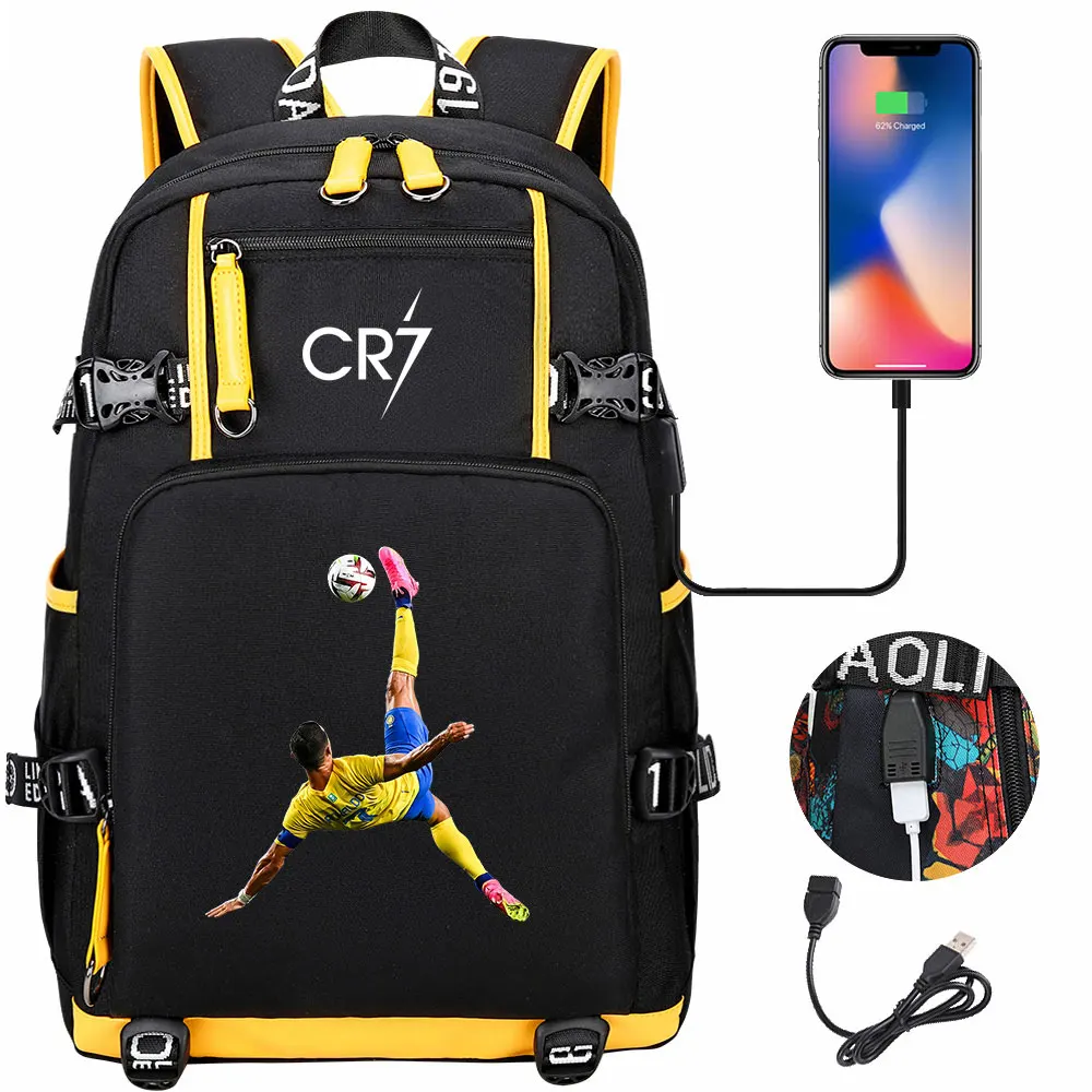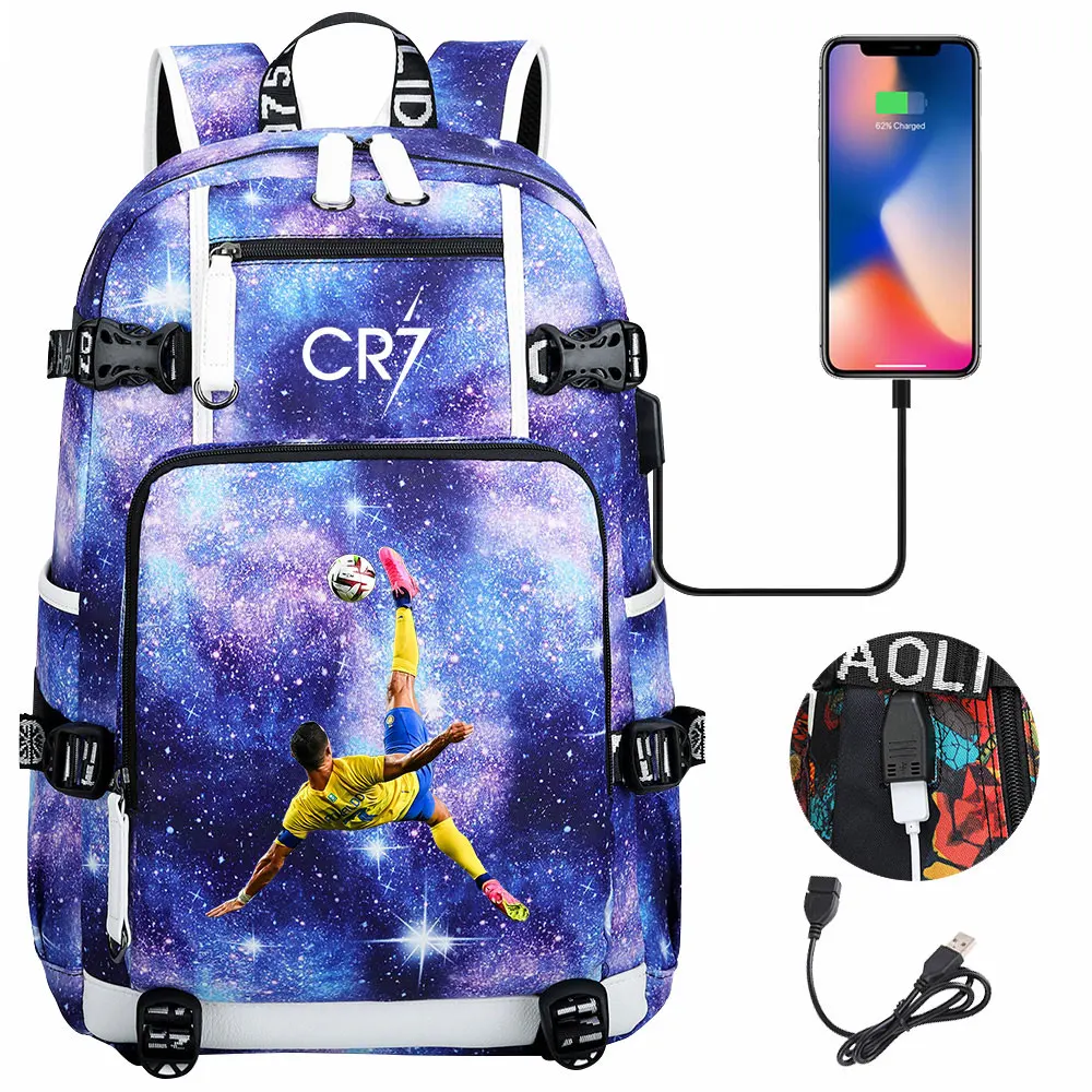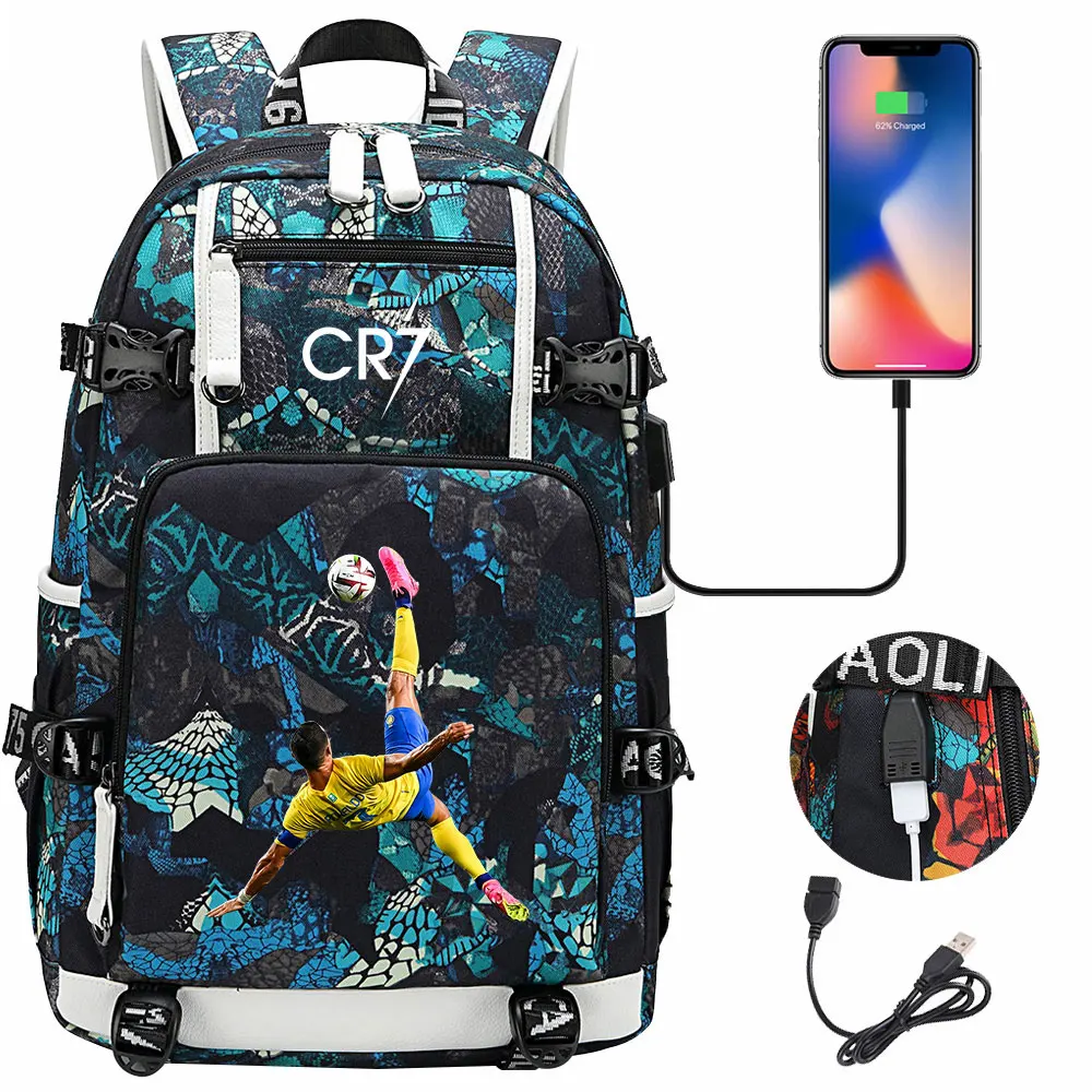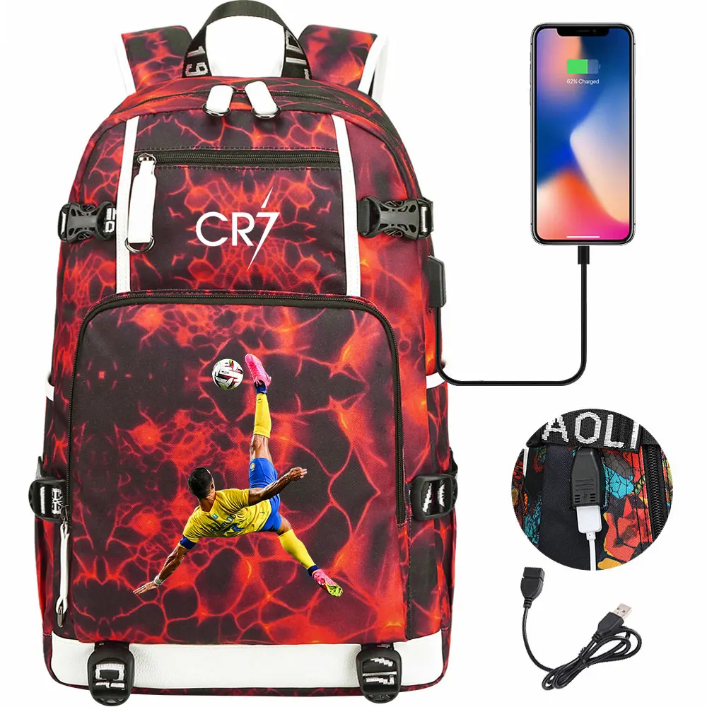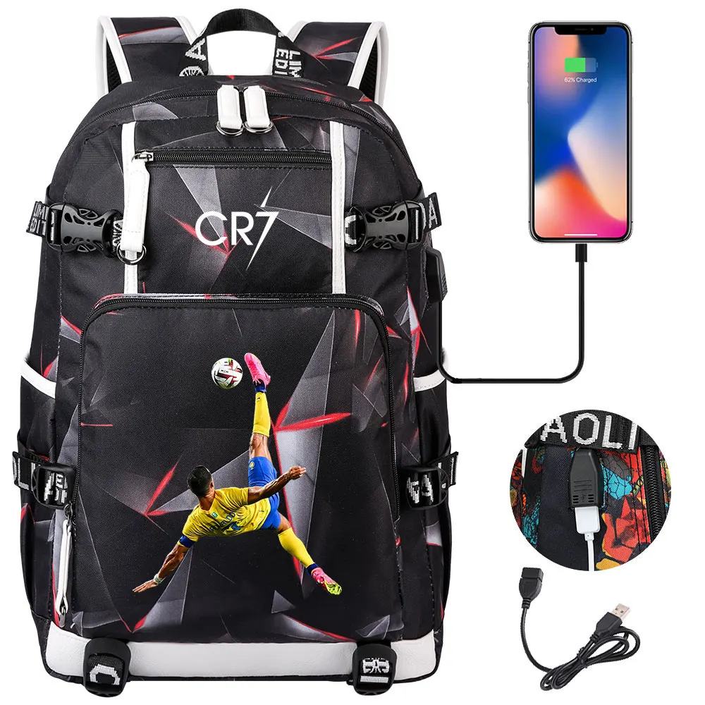 Football Star Cr7 USB Teenagers Student Schoolbag Women Men Laptop Travel Sport Backpack Girl Boys Kids Back To School Book Bags