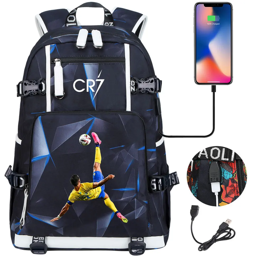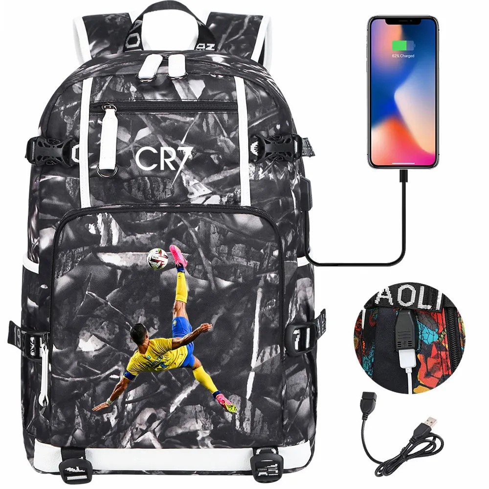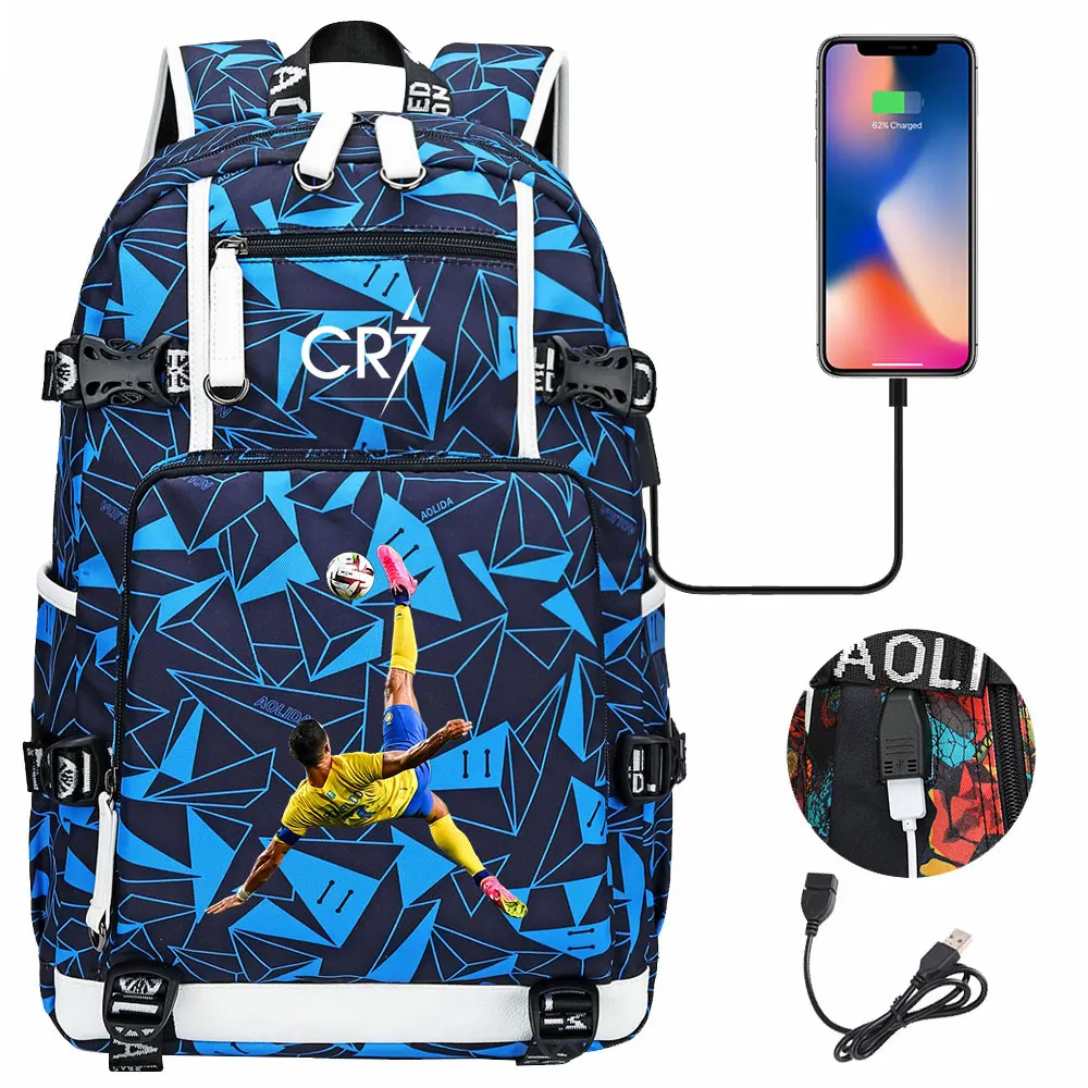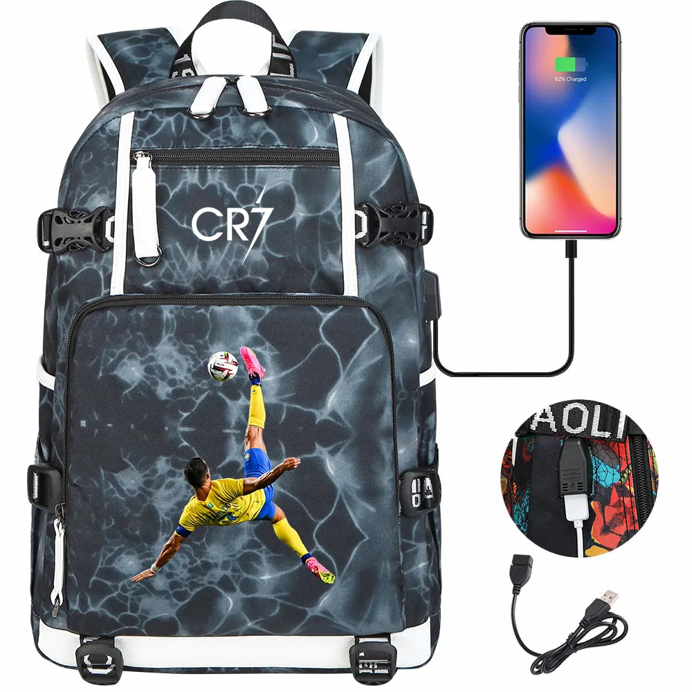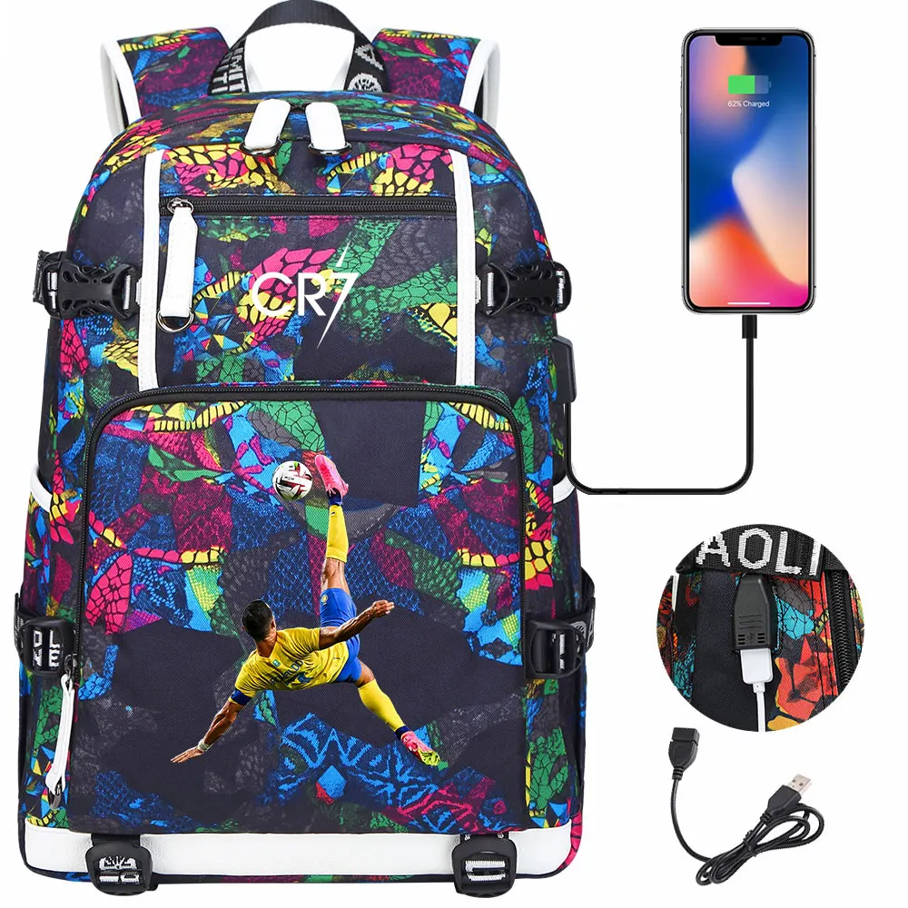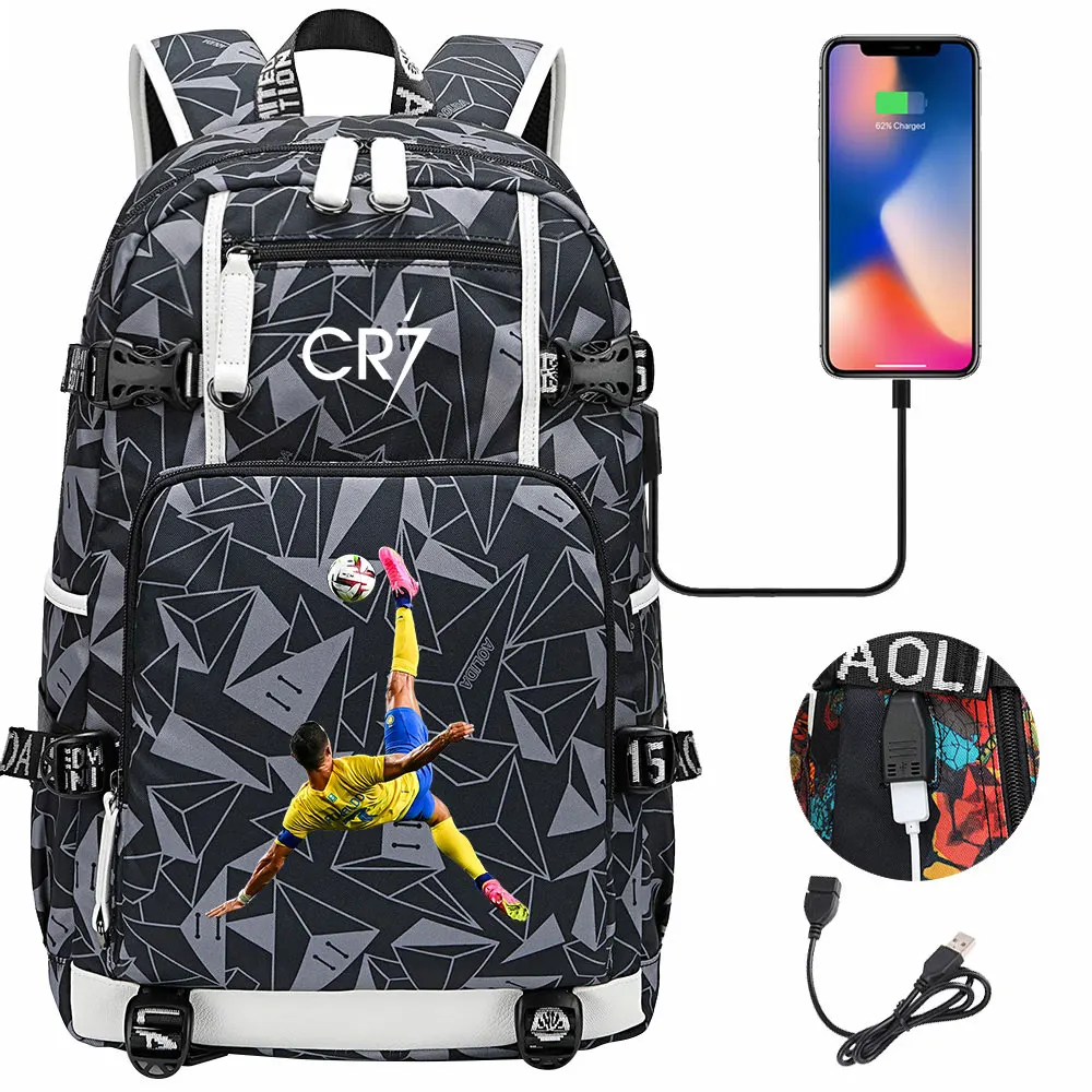 Football Star Cr7 USB Teenagers Student Schoolbag Women Men Laptop Travel Sport Backpack Girl Boys Kids Back To School Book Bags