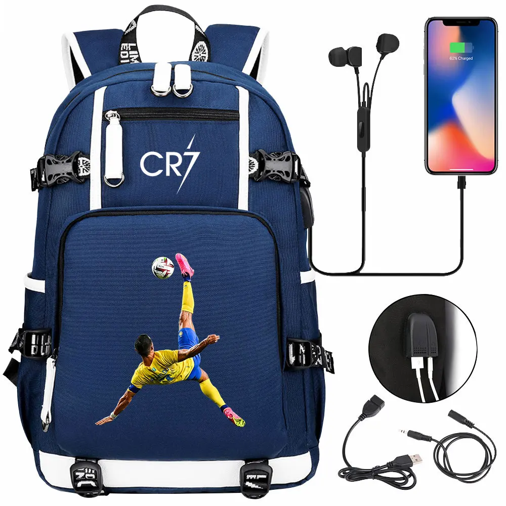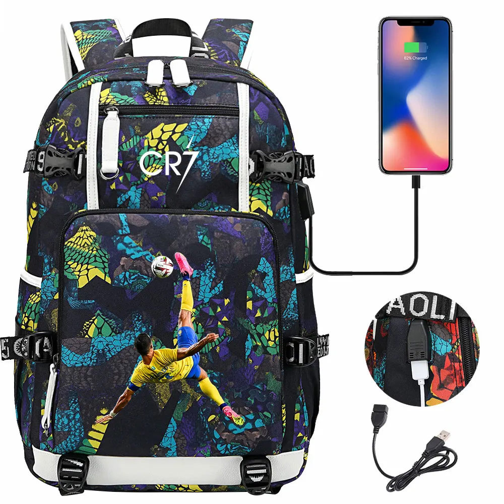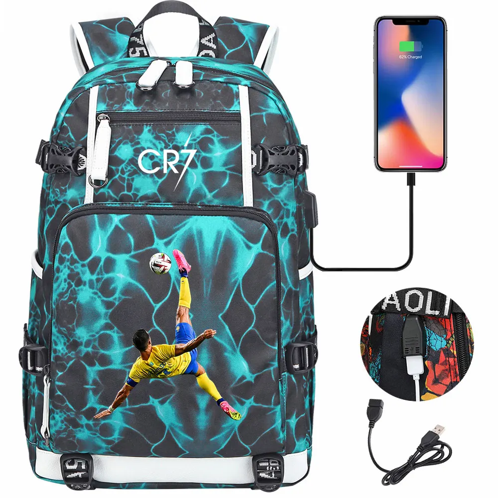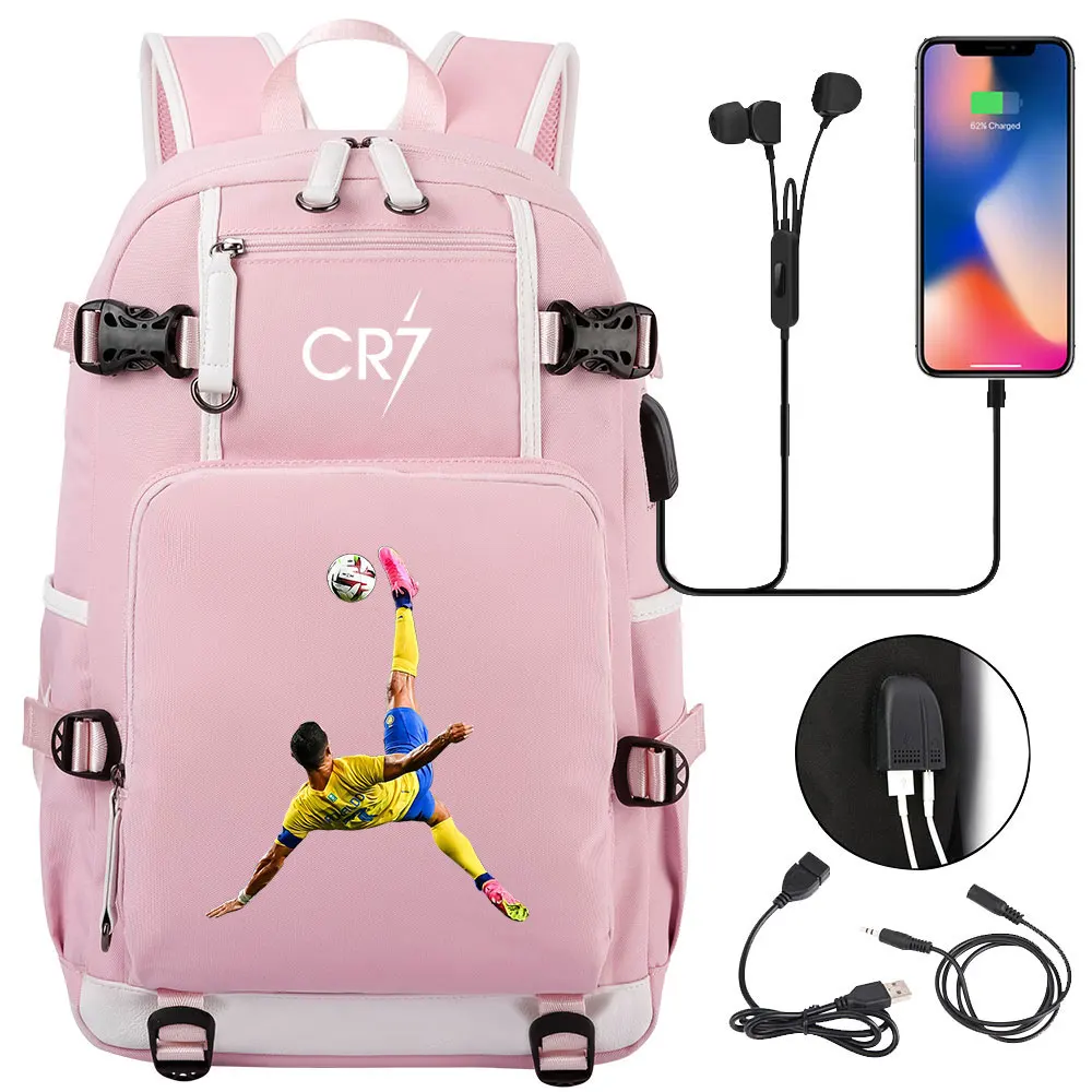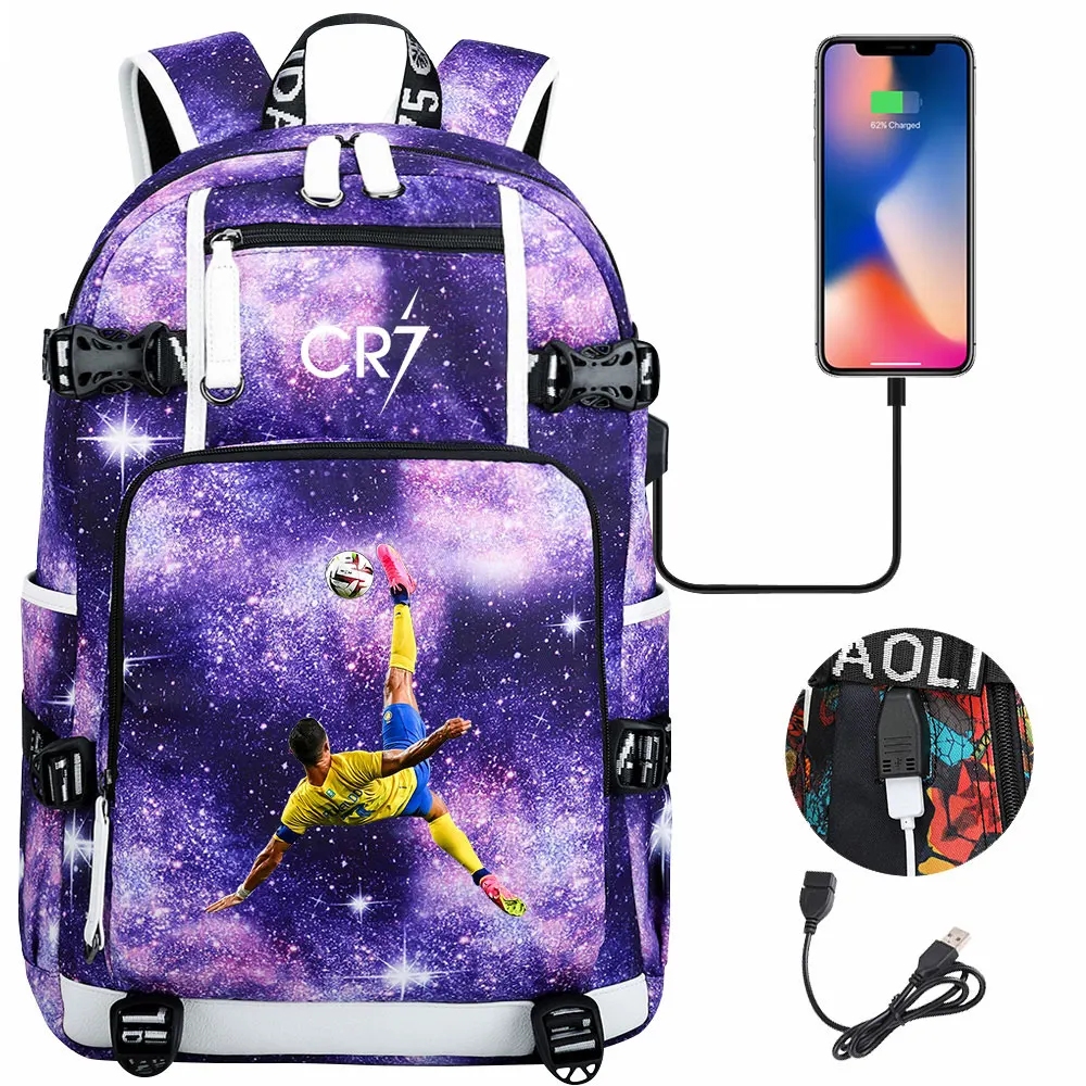 Football Star Cr7 USB Teenagers Student Schoolbag Women Men Laptop Travel Sport Backpack Girl Boys Kids Back To School Book Bags