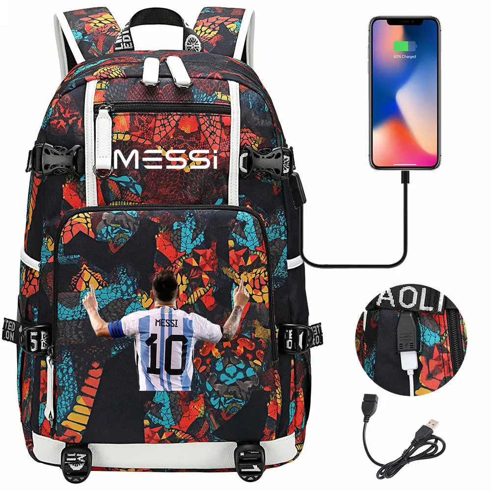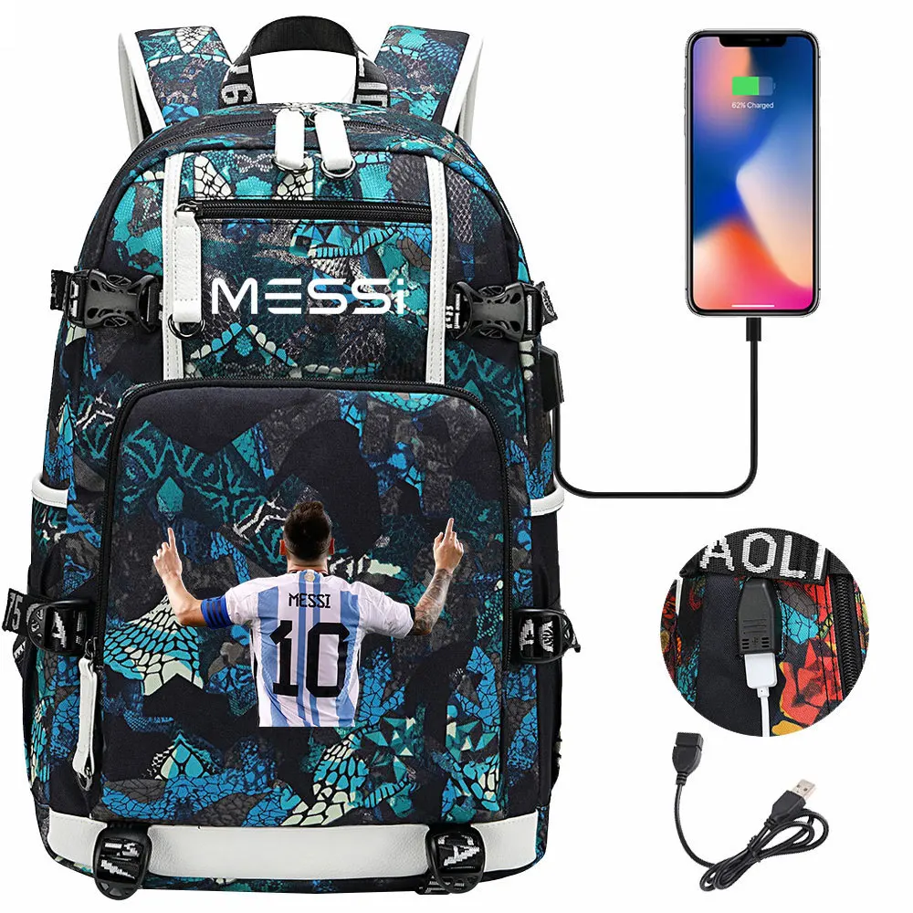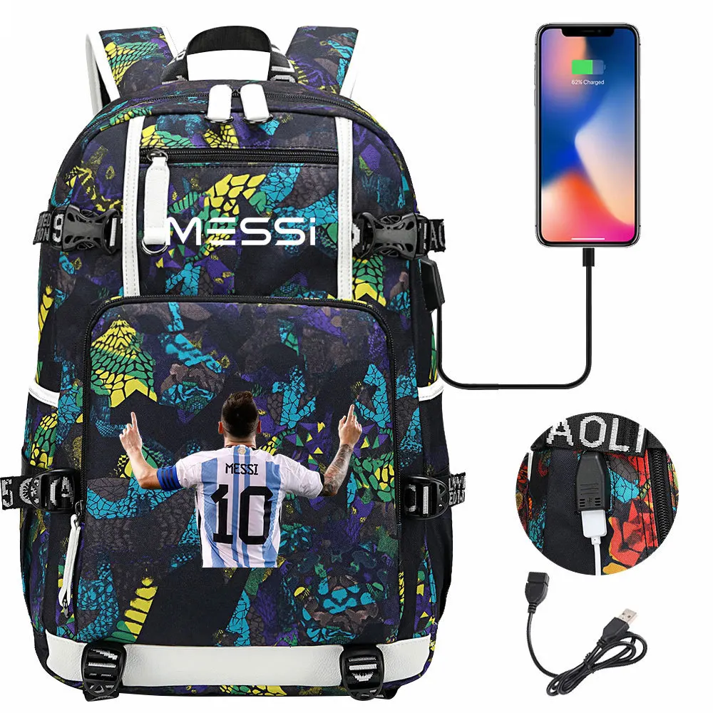 Football Stars Messi Backpacks Camouflage USB Teens School Bags Waterproof Boys Girls Casual Travel Laptop knapsacks