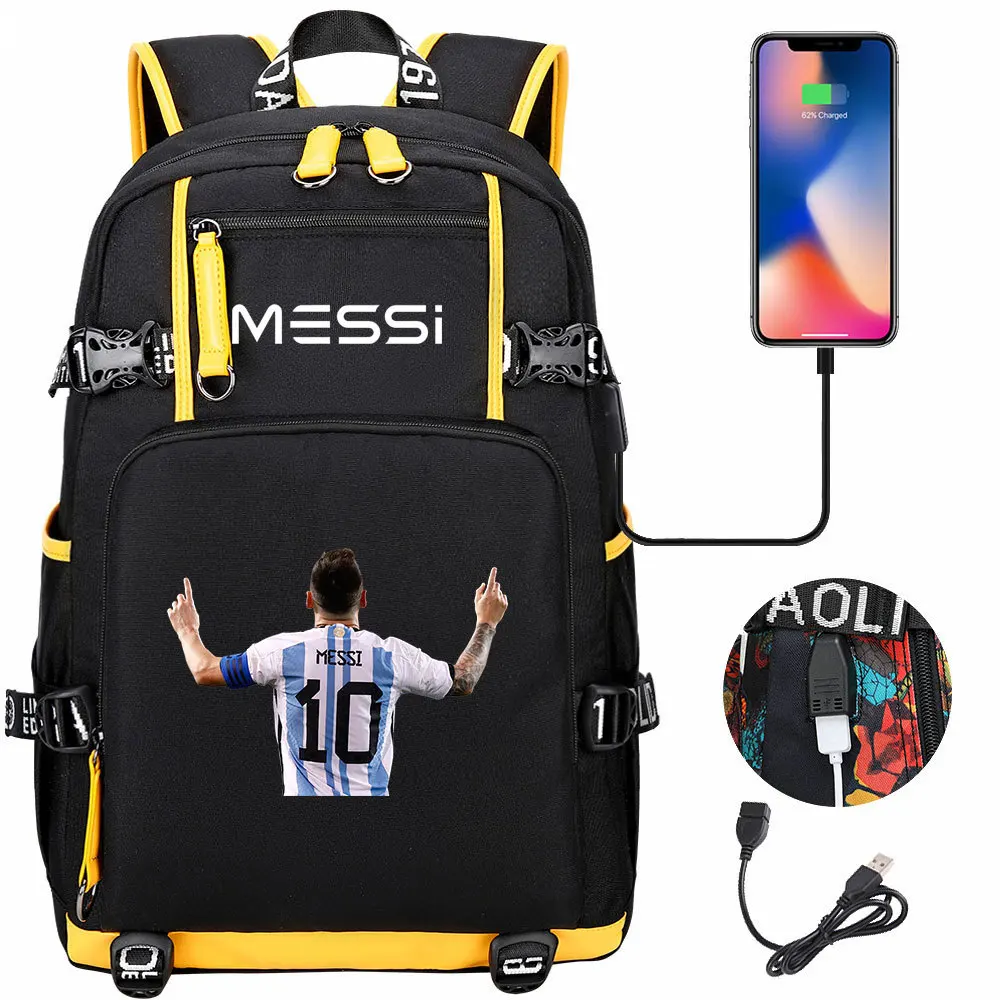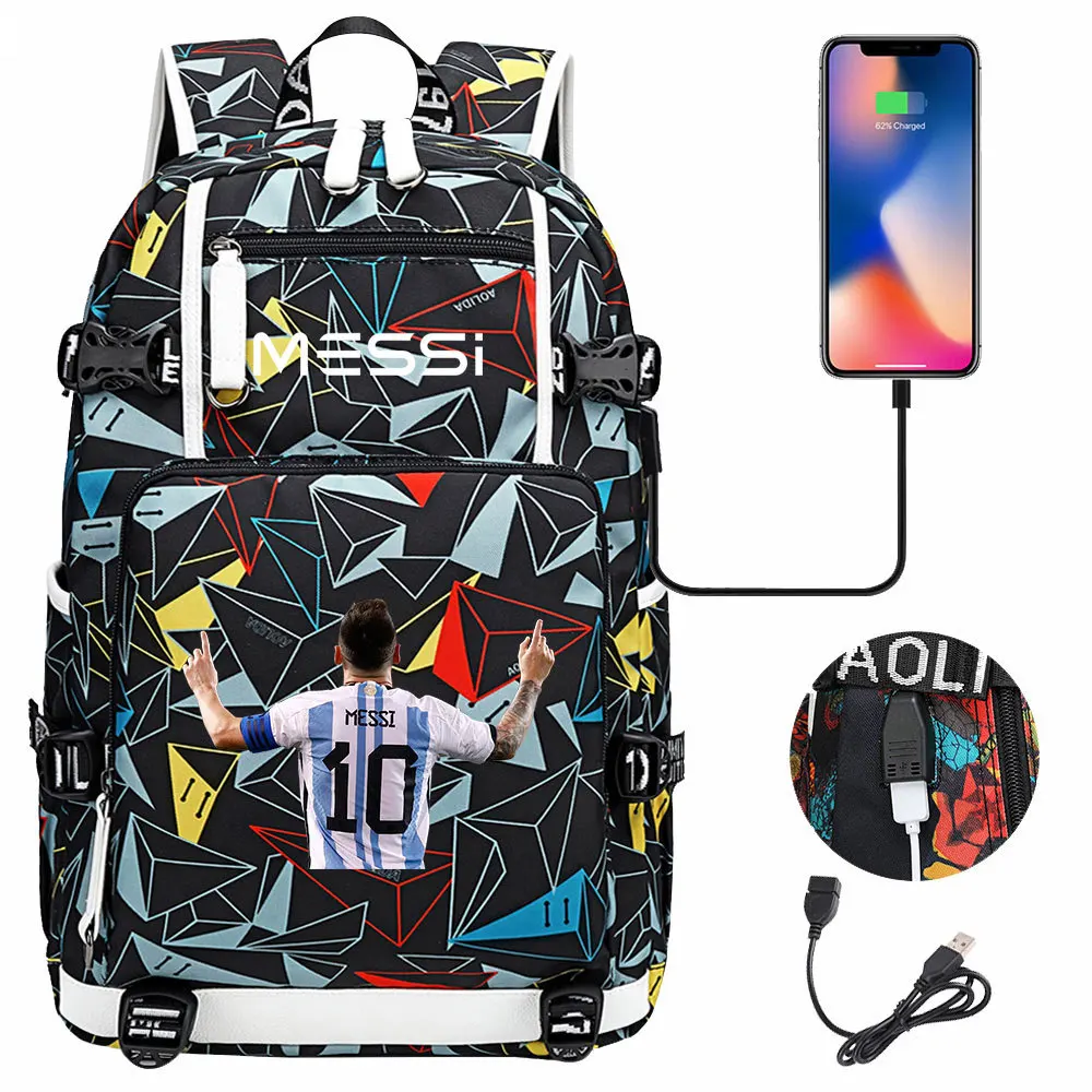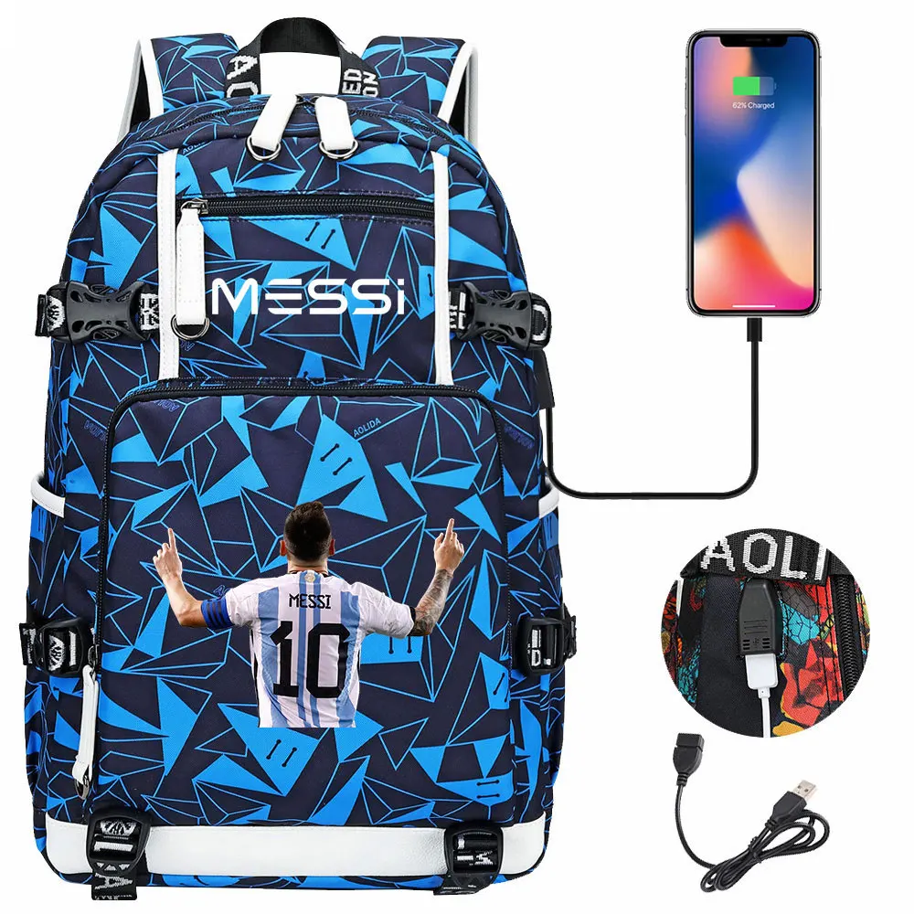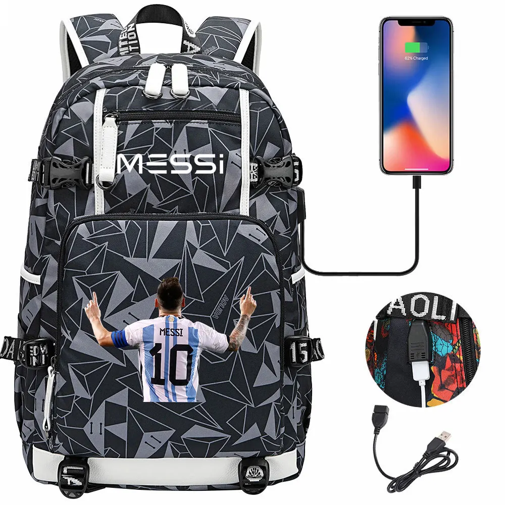 Football Stars Messi Backpacks Camouflage USB Teens School Bags Waterproof Boys Girls Casual Travel Laptop knapsacks