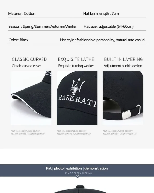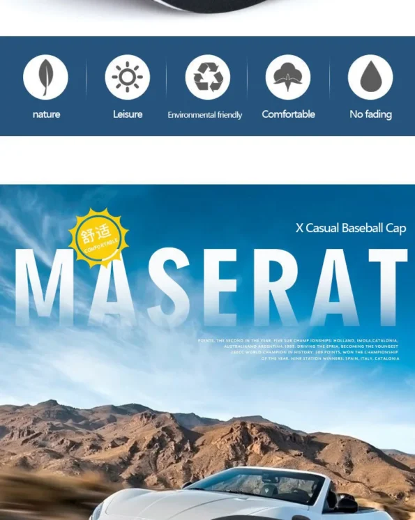 Maserati Baseball Cap Sun Protection Sun Hat Racing Baseball Cap 4S Versatile Travel Adjustable Universal Gift Hat for Men Women