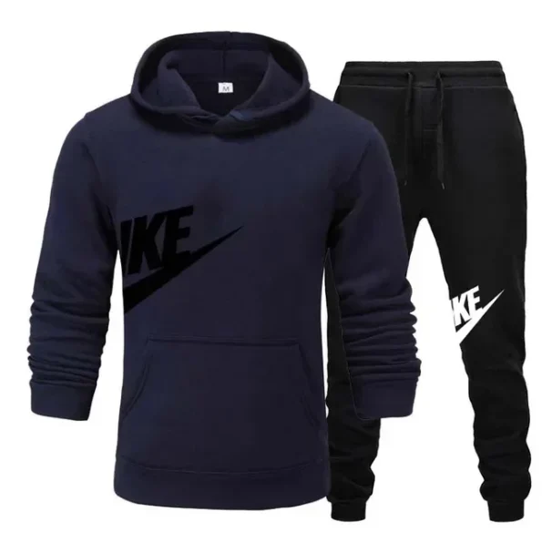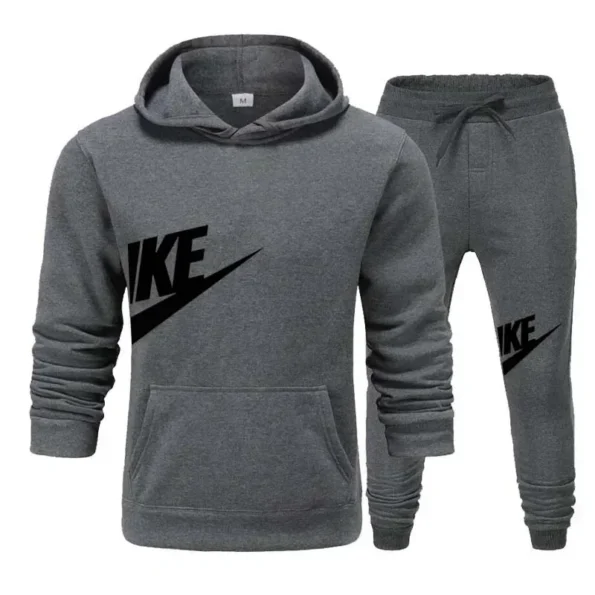 New men’s casual fitness and running sportswear for autumn and winter, fashionable printed loose hooded pullover + long pants se