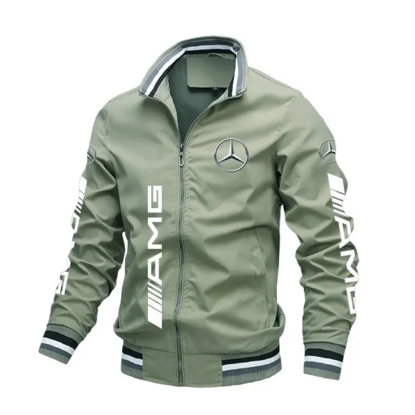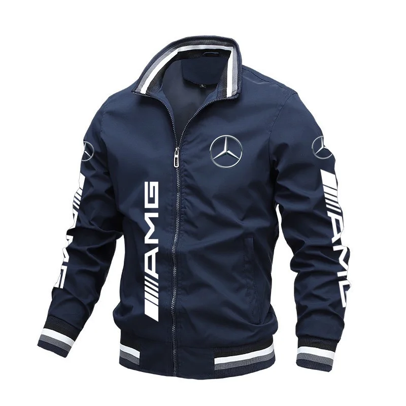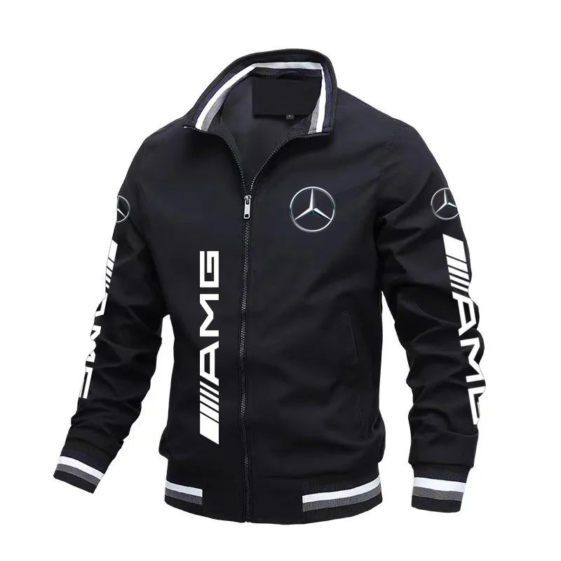 Spring and Autumn Jacket High-Quality Men’s Stand Collar Sports Jacket Motorcycle Pilot Print Mercedes-Benz Workwear Motorcycle