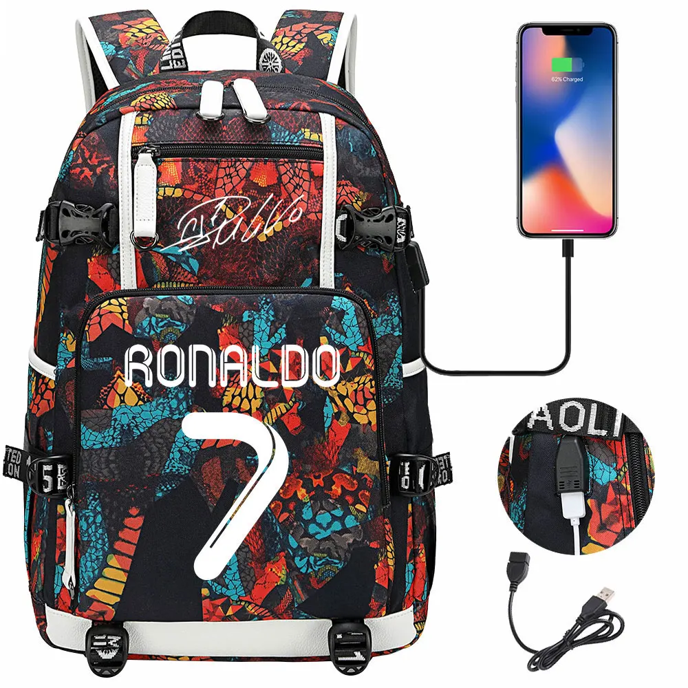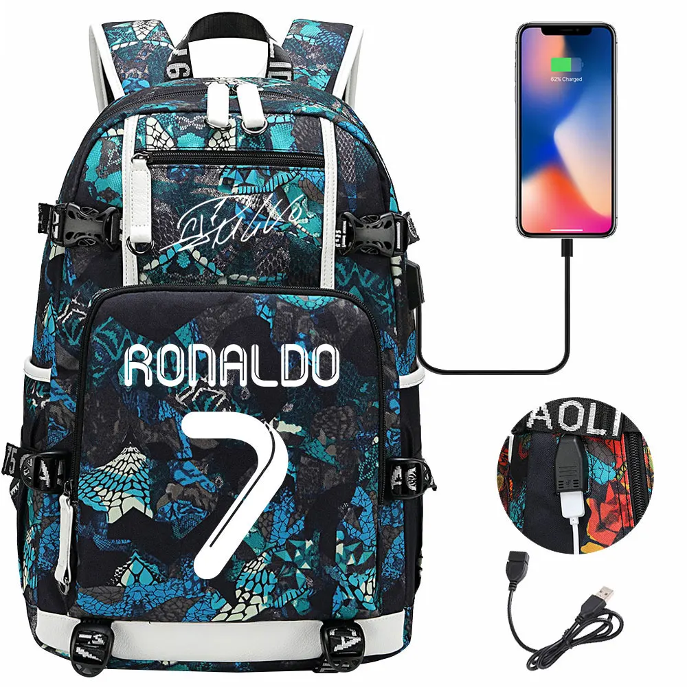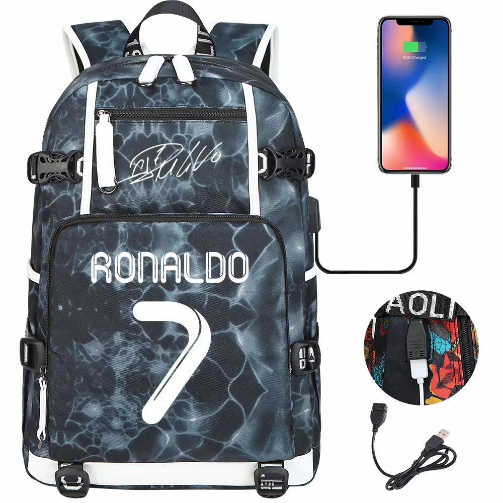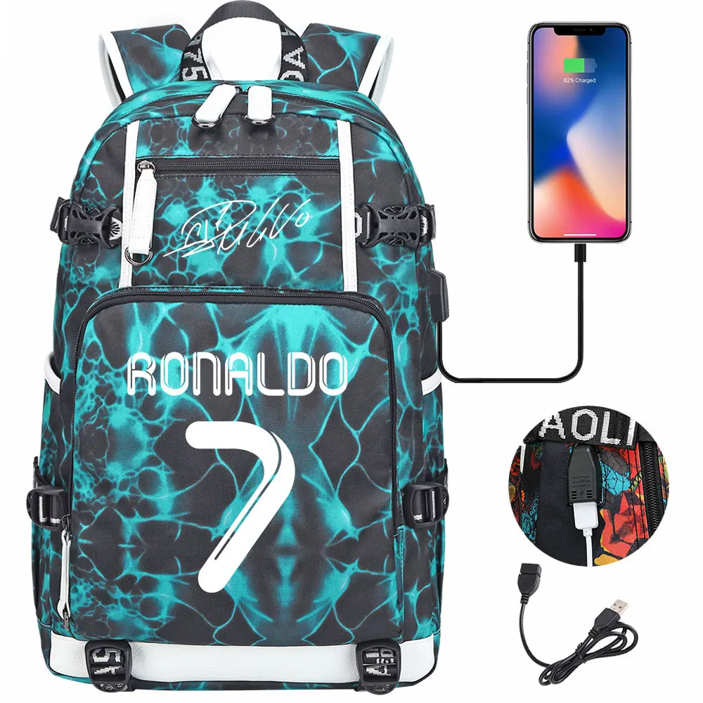 Teenagers Schoolbags Football Star CR7 Student Mochila Boys Girls Back To School Book Bags Women Men Laptop Travel USB Backpack
