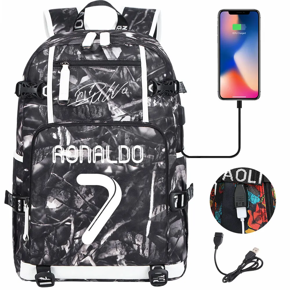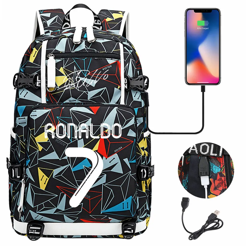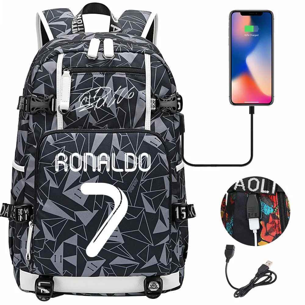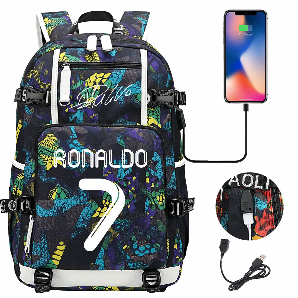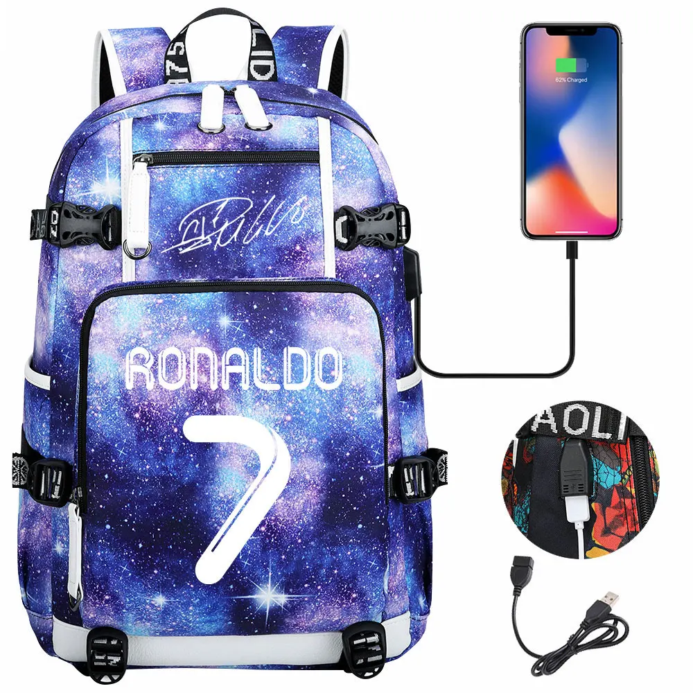 Teenagers Schoolbags Football Star CR7 Student Mochila Boys Girls Back To School Book Bags Women Men Laptop Travel USB Backpack