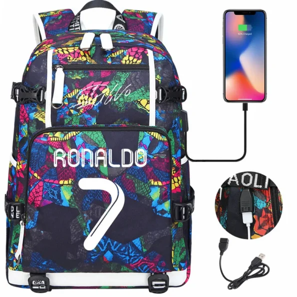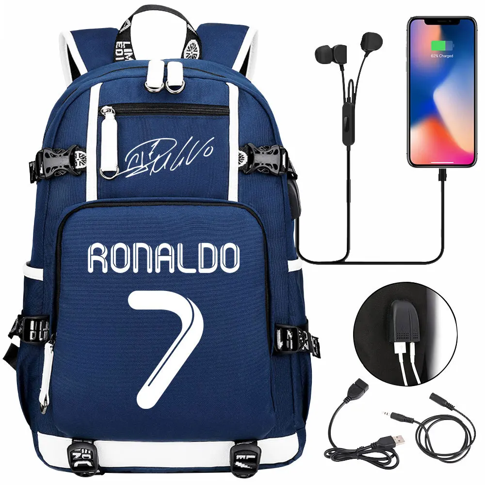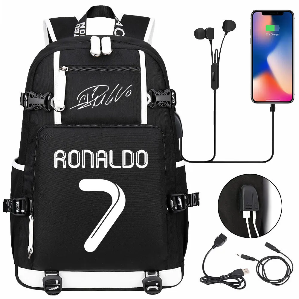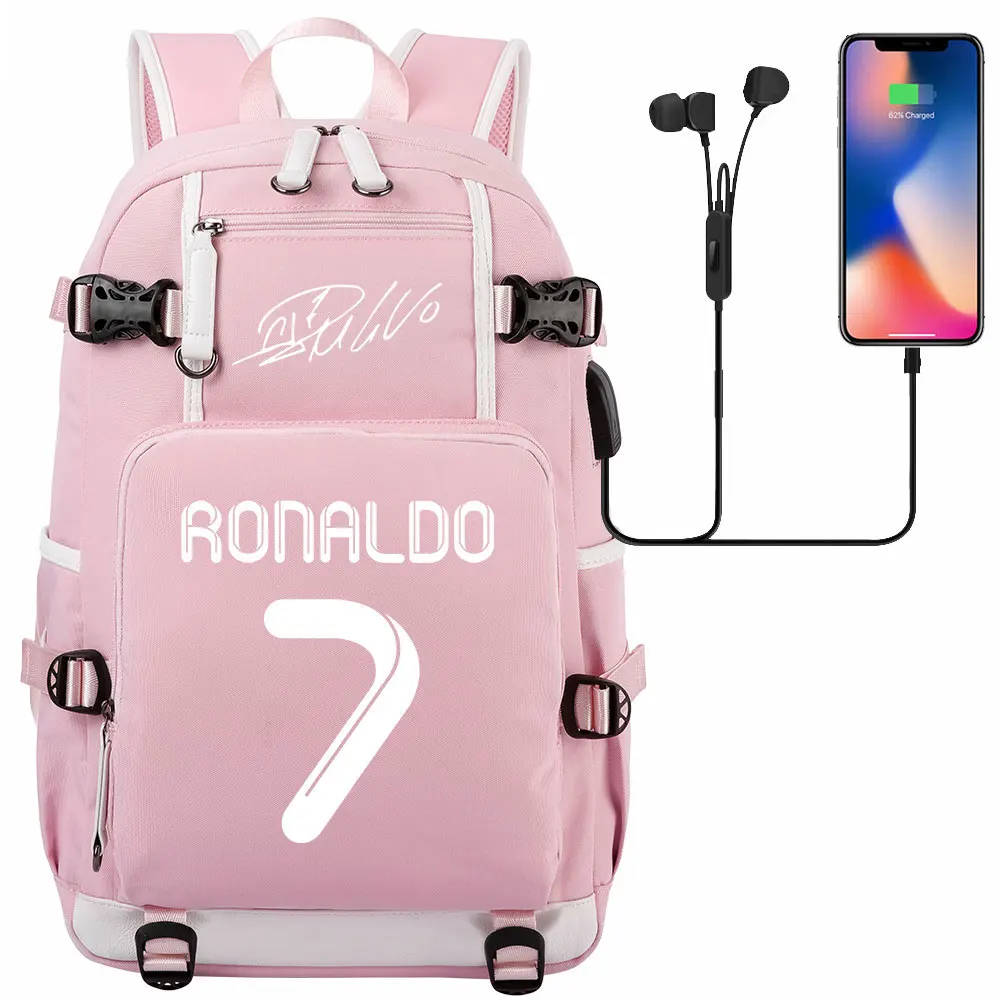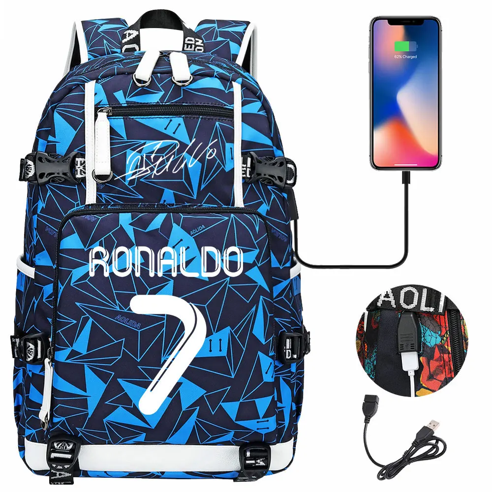 Teenagers Schoolbags Football Star CR7 Student Mochila Boys Girls Back To School Book Bags Women Men Laptop Travel USB Backpack